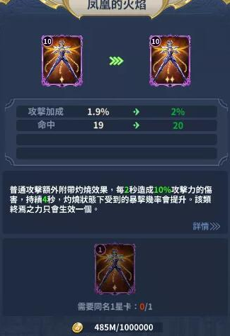 3.卡片每10级可以升1星,升星需要同化相同卡片。前3星1张,5星和6星需要2张。