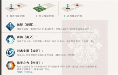 当然,马利欧斯本身也具有相当强的续航能力。作为一个奶妈,她不仅能够通过普通+奥义技来治疗队友,还可以为敌方挂易伤,并为友方净化负面效果,高难BOSS副本或者超角色养成水平很多的普通关卡非常适用!
