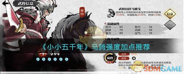 《小小五千年》是一款三国背景的策略战斗游戏,游戏中马腾怎么样,技能强度、加点、部队配置如何呢?很多小伙伴可能还不清楚,下面手游小编就给大家带来了《小小五千年》马腾强度加点推荐分享,想要了解的一起看看吧!