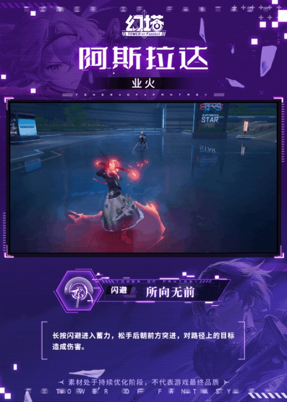 所向无前:长按闪避进入蓄力,松手后朝前方突进,对路径上的目标造成伤害。