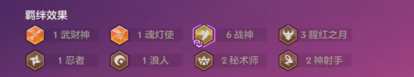1武财神、1魂灯使、6战神、3猩红、1忍者、1浪人、2秘术师、2神射