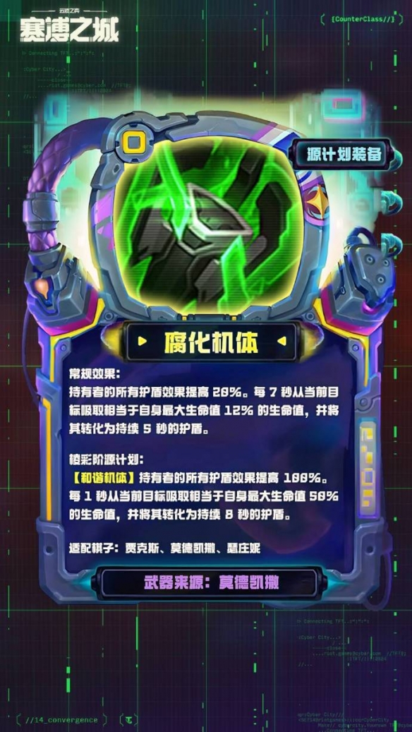 护盾提高20%,每7秒吸取最大生命值12%的生命并转为护盾,护盾持续5秒