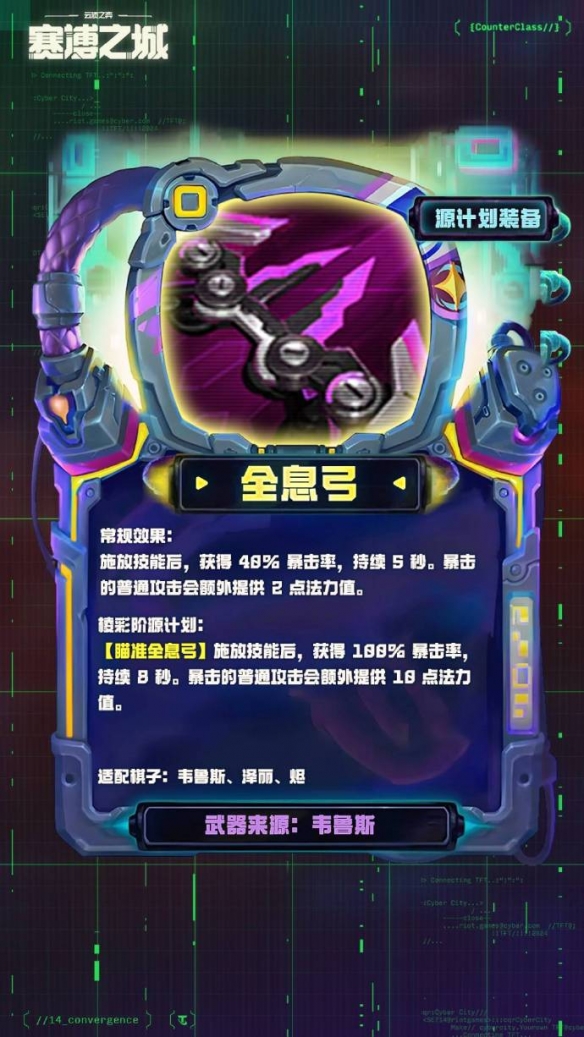 金铲铲之战s14源计划羁绊阵容装备进行了变更,很多玩家不知道武器有哪些,一共有7把武器:斥力灯笼、脉冲稳定器、超能獠牙、腐化机体、赛博线图、全息弓、时空电容器,每个武器有两个效果。接下来就由小编给大家带来了详细的《金铲铲之战》s14源计划武器一览!