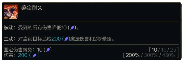 主动:对当前目标造成(200%/300%/450%法术强度)魔法伤害和2秒晕眩。