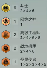 6斗士、1网络之神、2高级工程师、2战地机甲、1圣灵使者