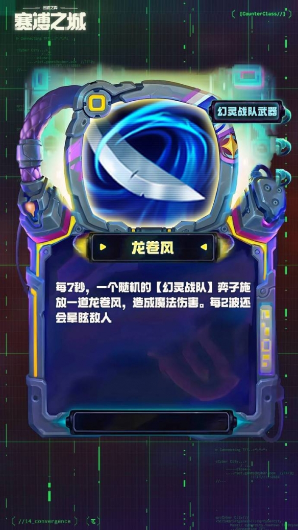 每2秒【幻灵战队】随机一个棋子释放龙卷风造成魔法伤害,每2波附加一次眩晕。