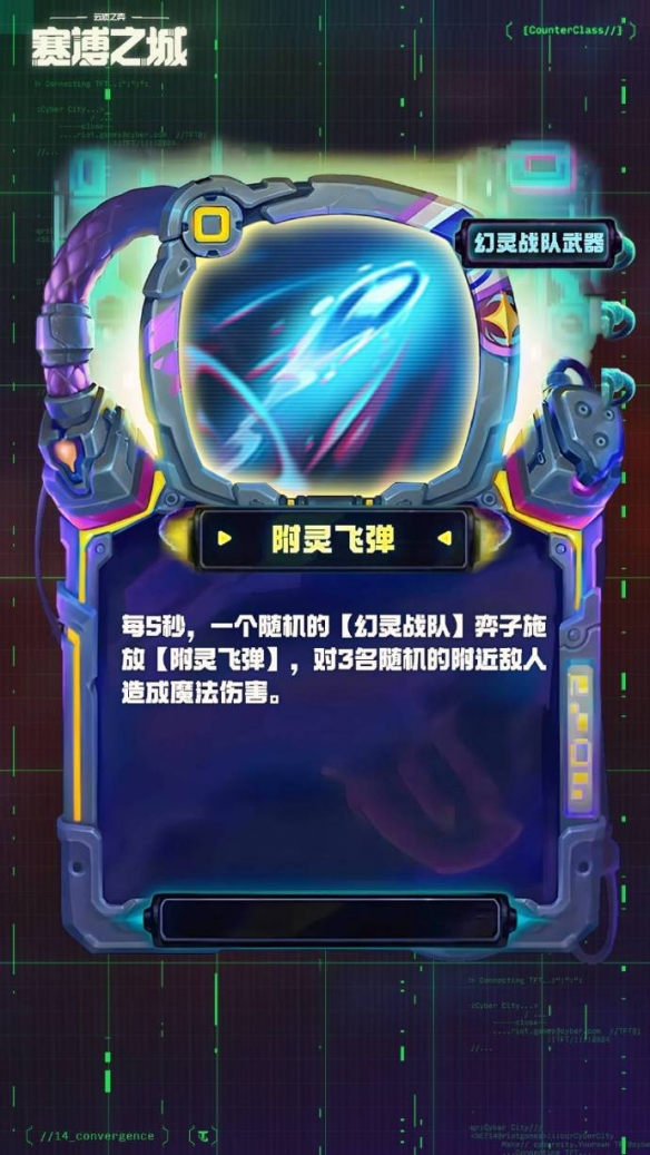 每5秒【幻灵战队】随机一个棋子扔出飞弹,对附近随机3名敌人造成魔法伤害。