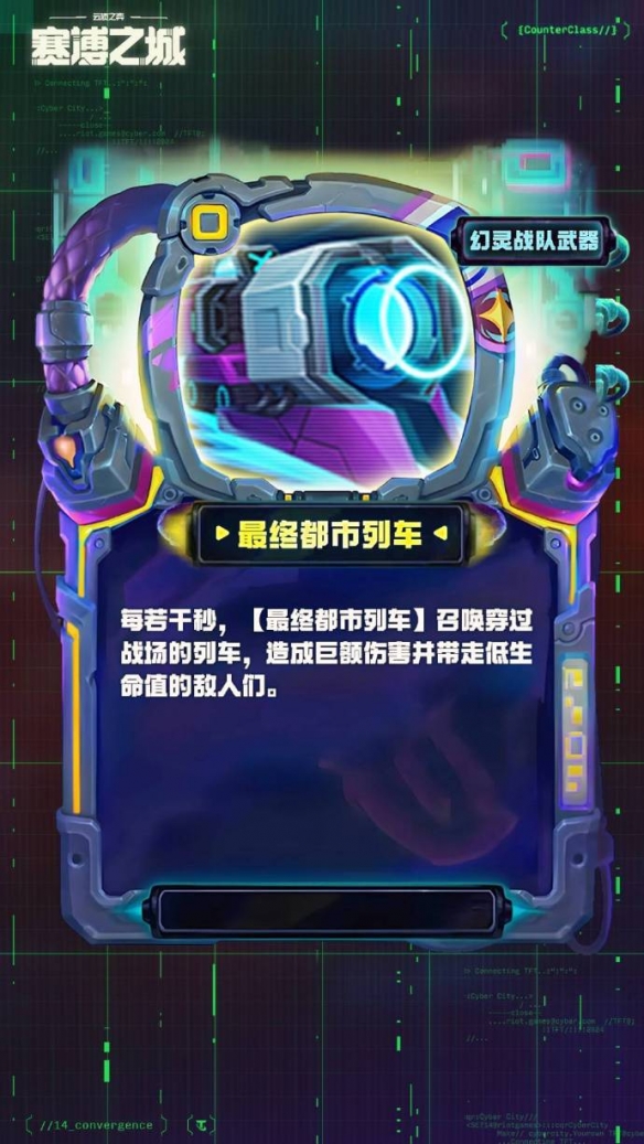 每若干秒召唤列车对敌人造成大量伤害,直接带走低生命值敌人。