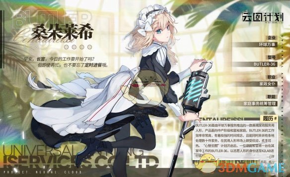 BUTLER-36是由环球万事服务推出的一款高端家政服务用人形,产品面向中产阶级和富裕家庭。BUTLER-36的工作效率非常高,有着极强的时间观念,且能同时井井有条地处理数十件家务,在民用人形市场上颇受欢迎,炙手可热。“心智云图”计划开启后,-位德国军官将一台在其家中工作的BUTLER-36,以志愿人形的身份送至42L AB进行实验。