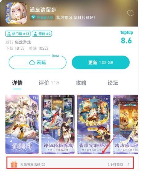 由于平台限制,只能在TapTap App中才会显示【礼包与激活码】。麻烦使用网页和iOS系统的道友,使用模拟器或者安卓手机安装TapTap领取。