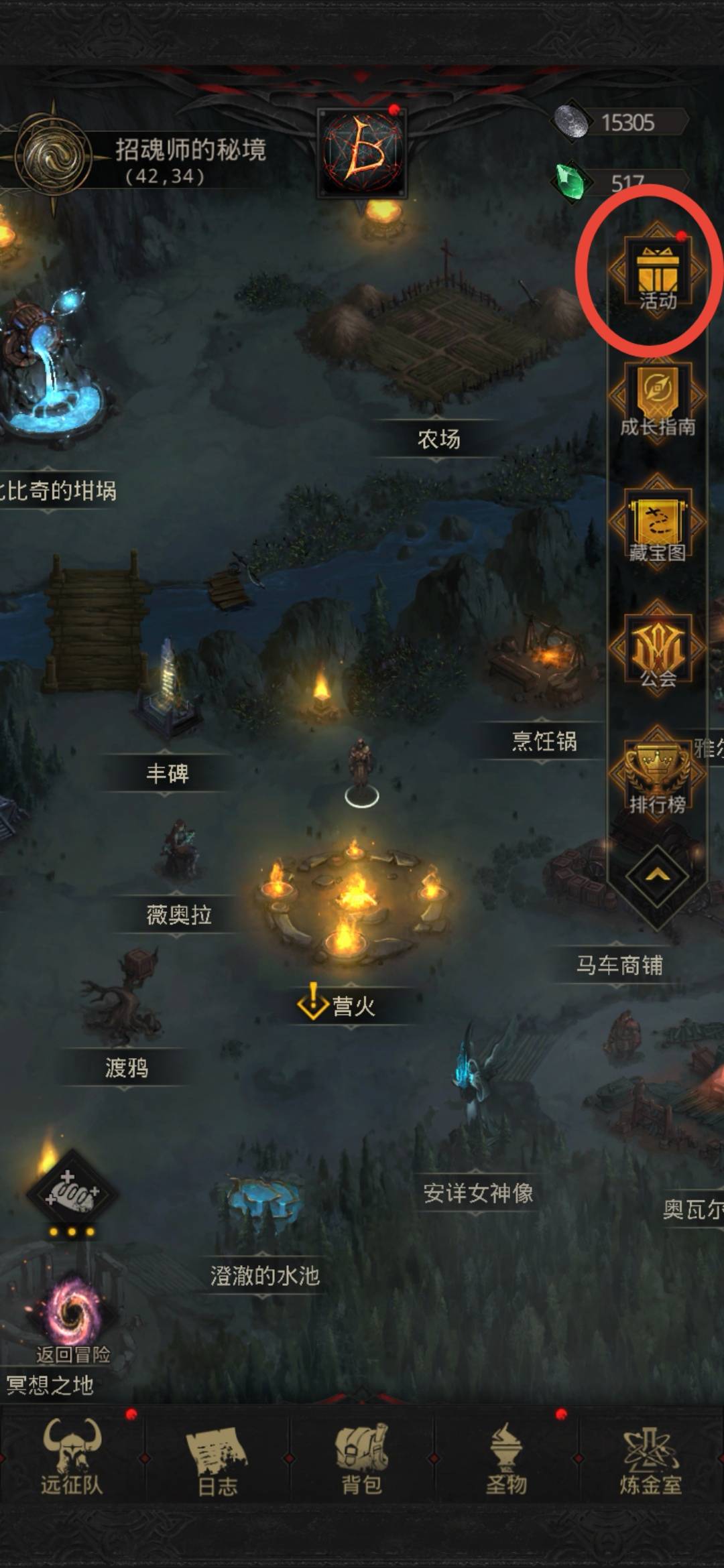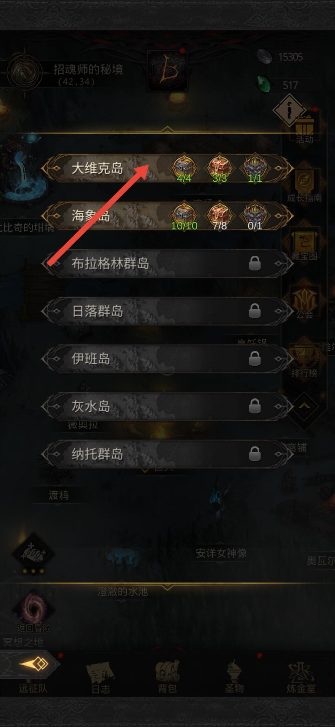2、进入的界面就是藏宝岛屿,点击高亮的就能进入了。