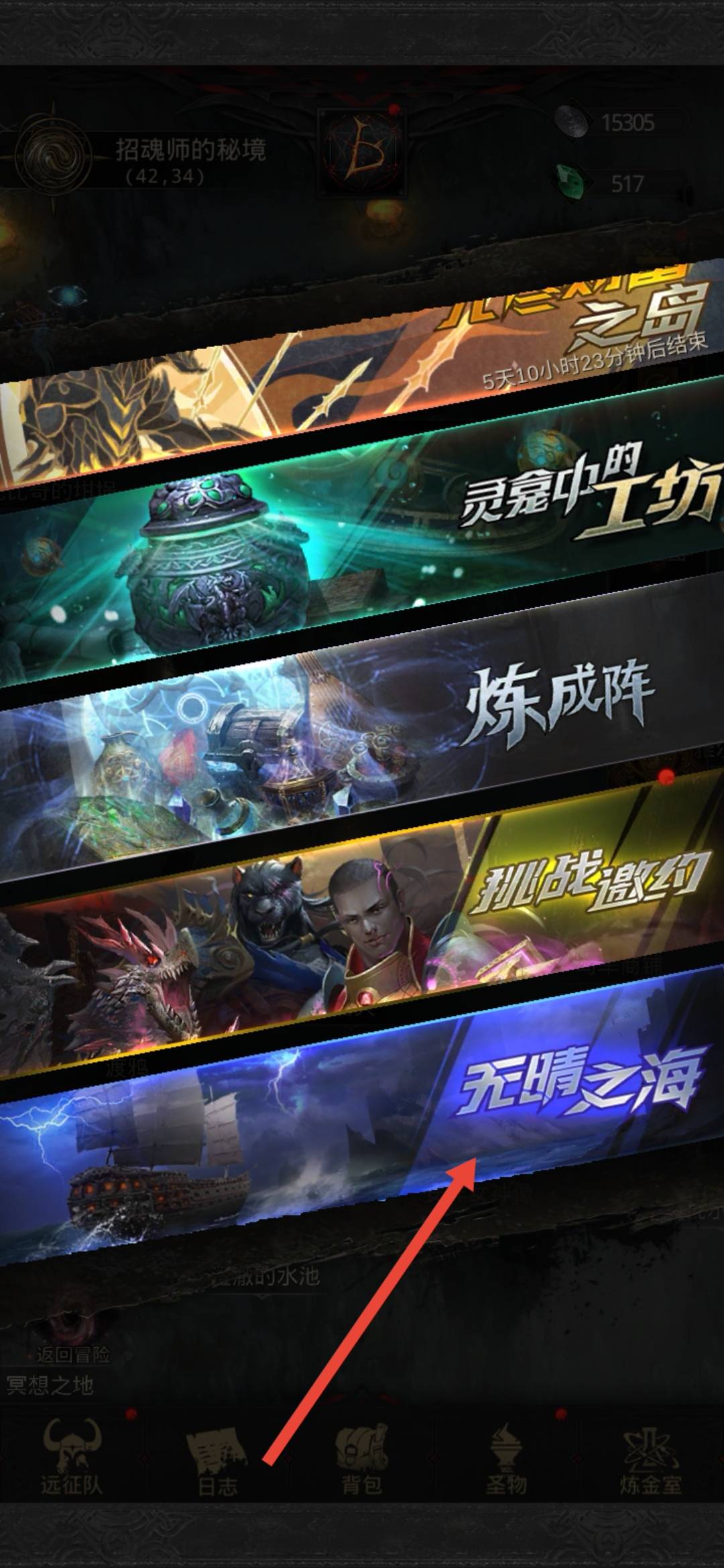 1、无晴之海在活动界面,拉到最下面,最后一个就是无晴之海,点击进入。