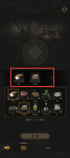 2、在烹饪锅界面选择食材:面粉 发酵粉,点击烹饪