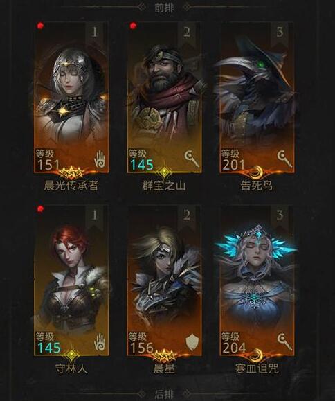 1、阵容推荐:晨光传承者 群宝之山 告死鸟 守林人 晨星 寒血诅咒,该阵容释放了一个常规奶位,食物可以都选择伤害加成。