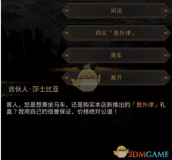 第11层,马车商铺,可以购买随机宝箱【意外律】,同时可以乘车逃课到第19层,不会增加虚空印记!莎士比亚,我的超人!