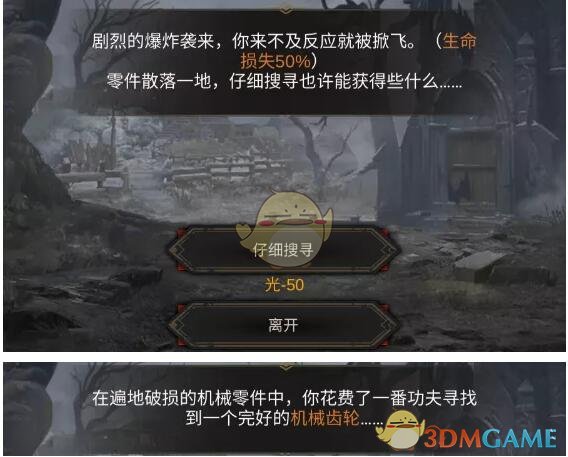 破坏仪器之后一定要记得仔细搜寻哦!虽然会付出一定代价,但收获也是巨大的!不仅是这次,之后每次与火焰装甲战斗后都可以破坏珍妮蒸汽机,消耗50光搜寻机械零件。第7层的珍妮蒸汽机被破坏后还可以明显降低强制打怪的几率!至于搜寻到的机械零件有什么用嘛,就看看后面吧~