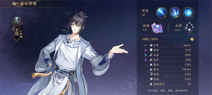 在花亦山心之月中青隐是一位R级名士。很多小伙伴对青隐还不是很了解,今天小编给大家带来了《花亦山心之月》青隐角色图鉴一览。感兴趣的小伙伴一起来看看吧。希望可以帮助到大家。