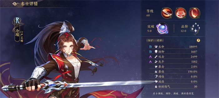 技能描述:冷瑶勇猛顽强,每次攻击命中1个敌人增加自身2%的减伤状态,最多叠加10层