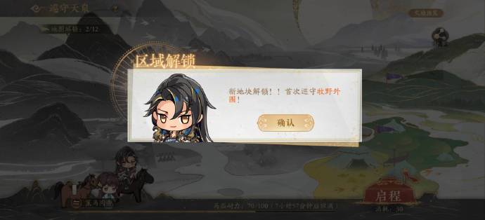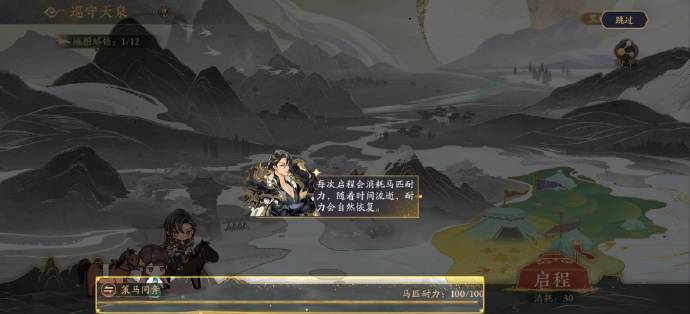 每次行动消耗30点马匹耐力,耐力一天回复90,一管耐力=三次解锁机会(P1)。