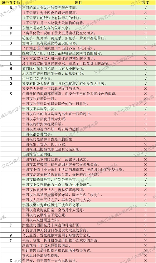 在这里先祝各位小伙伴儿童节快乐!今天这一期是关于十四夜的问题,图中绿色是对红色是错,详细的题库及答案内容如图所示,相关内容并不完整,仅供参考。