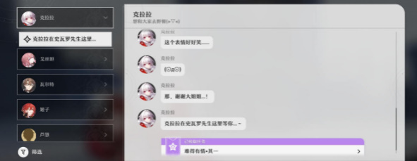 7、找到之后去找回去找克拉拉对话,对话完成难得有情其一任务就完成了。