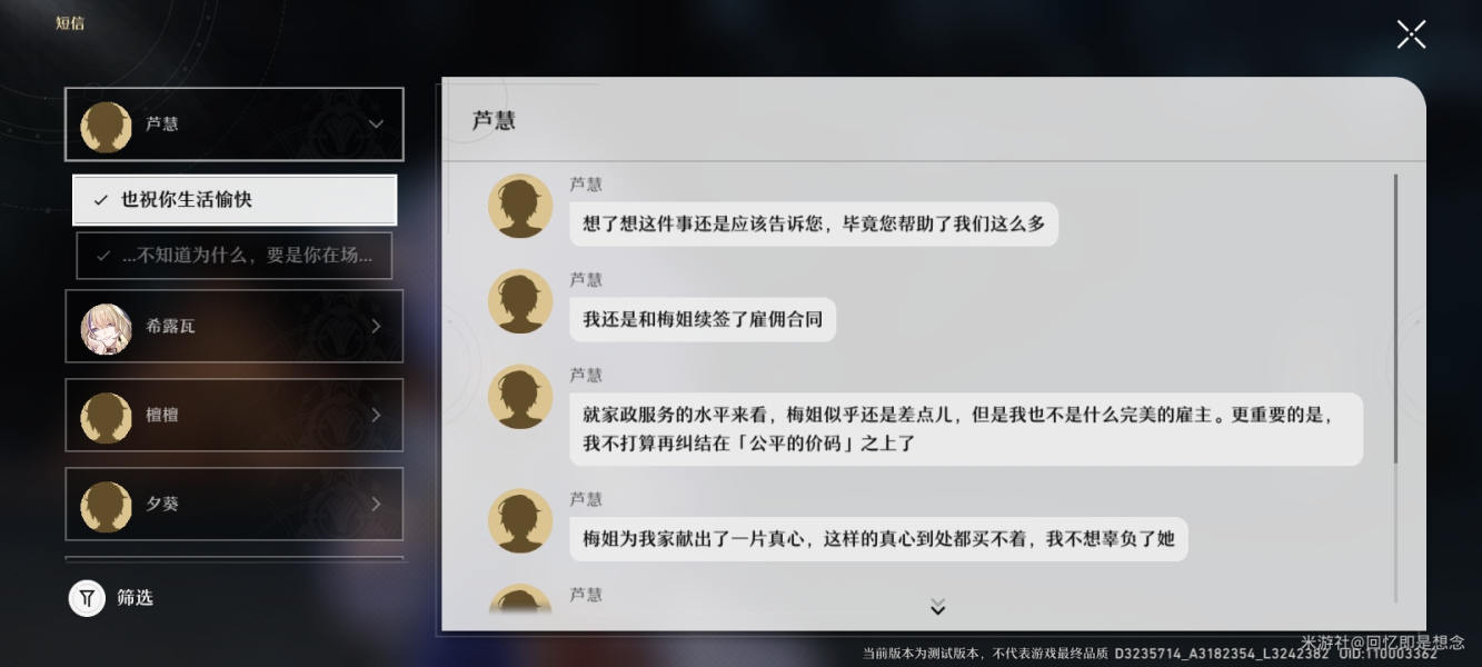 我们到达星槎海和芦慧对话,得知她已经决定要解雇梅姐了