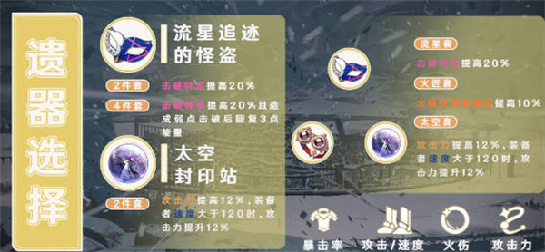 4:遗器最佳选择为【流星追迹的怪盗】四件套与【太空封印站】二件套;
