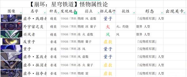 之后大家来到第一章:空间站黑塔。这里大家要面对的是反物质军团。下图是大家会遇到的怪。