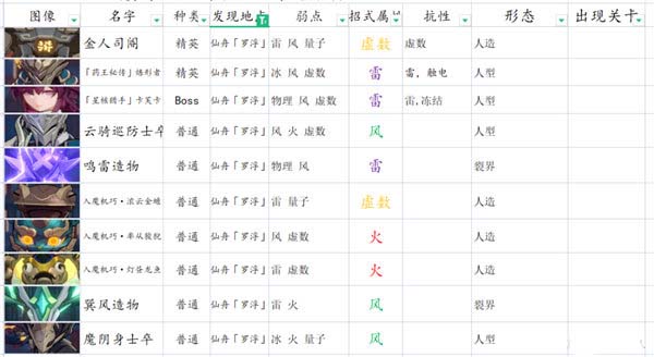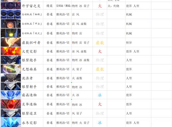这是目前一个完全开放章节的第一世界。所以怪物体系完整,目前大部分深渊和模拟宇宙怪物皆来自于这。接下来是两张怪物图。