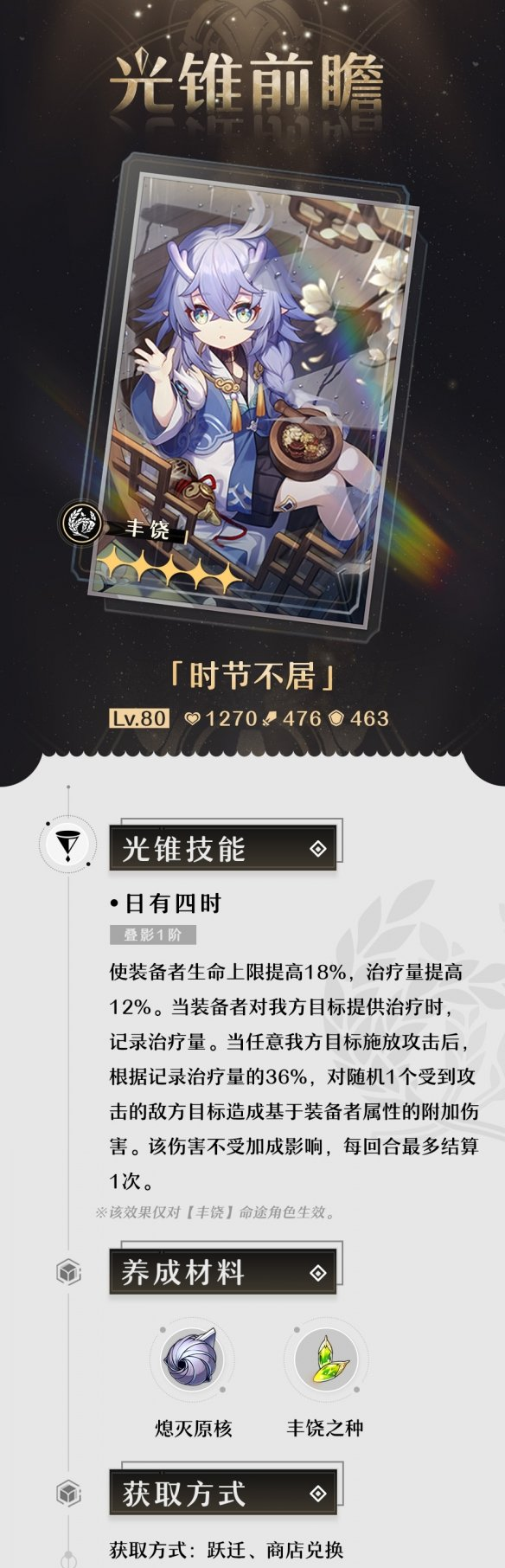 以上就是小编整理带来的崩坏:星穹铁道光锥时节不居怎么样,光锥时节不居技能介绍,更多相关游戏攻略,请关注手游网!