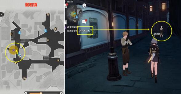 (1)该任务追踪任务即可完成,只需注意后面这里需要到下图【磐岩镇】位置,找到嫌疑人,嫌疑人位置如下图