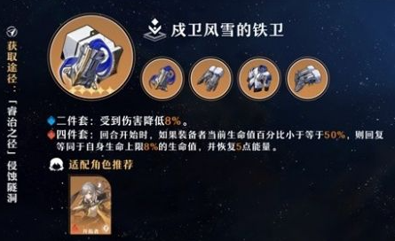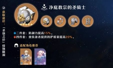 防御效果类遗器,提供优秀的防御加成,套装护盾量整体提升约25%,仅推荐杰哥、三月七,如果想给火主使用可以搭配圣骑士2+铁卫2,防御加减伤效果也不错;