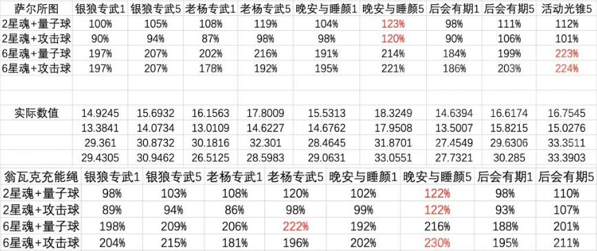 2命银狼 萨尔所图+量子球+叠5晚安与睡颜输出最高。