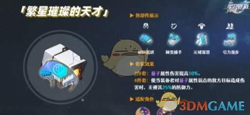 2、四件套:当装备者对敌方目标造成伤害时,无视其10%的防御力,若目标拥有量子属性弱点,额外无视其10%的防御力。
