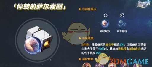 二件套:使装备者的暴击率提高8%,当装备者当前暴击率大于等于50%时,其施放终结技和追加攻击造成的伤害提高15%。
