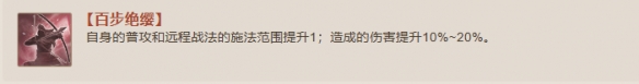 自身的普攻和远程战法的施法范围提升1;造成的伤害提升10%~20%。