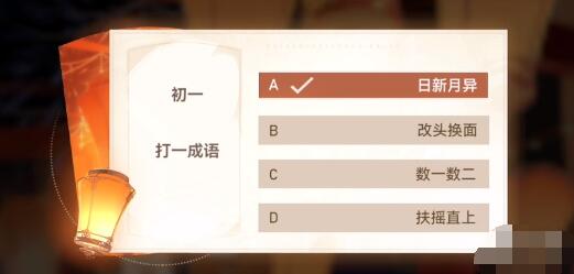 答案:正月初一是新的一年的第一天,也可以表示新的月份的开始,这与“日新月异”的意思相符合。因此是日新月异。