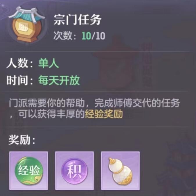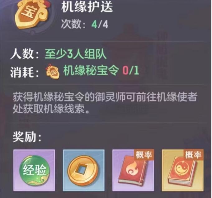 这个任务是单人任务,但是宗门任务最重要的是完成之后会给你一个一条龙任务的道具名字叫做(机缘秘宝令)这是用来完成机缘护送的道具,很重要。所有世界基本都会喊带牌子来。这个牌子就是(机缘秘宝令)。