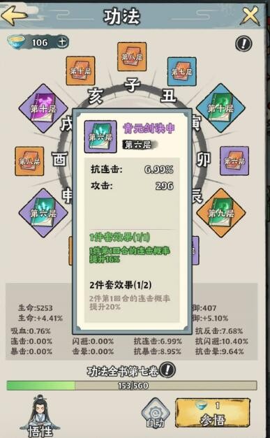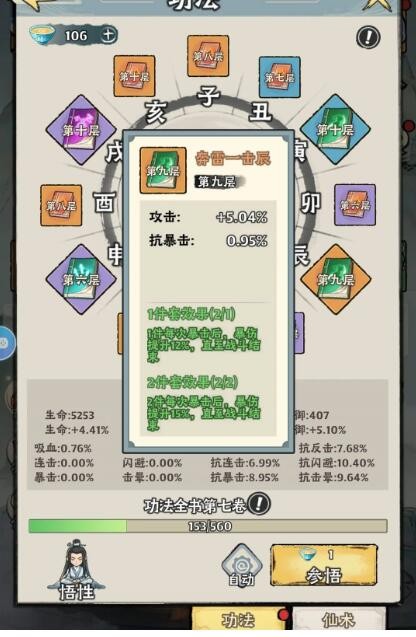 4、功法方面必选奔雷一击和青元剑诀,主要还是奔雷一击加暴击后加爆伤,青元剑诀一个就行加连击。