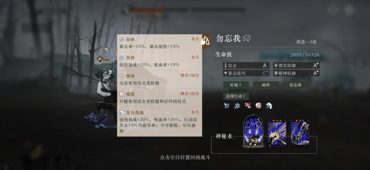 吵闹鬼是很关键的前排,大招嘲讽加闪避可以吸收超多的伤害,弄臣如果没办法确保能够拉到boss,尽量少开嘲讽避免暴毙。