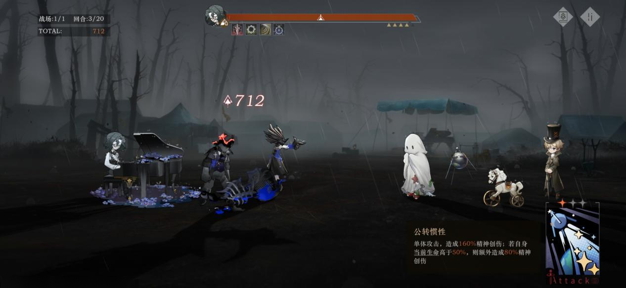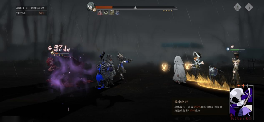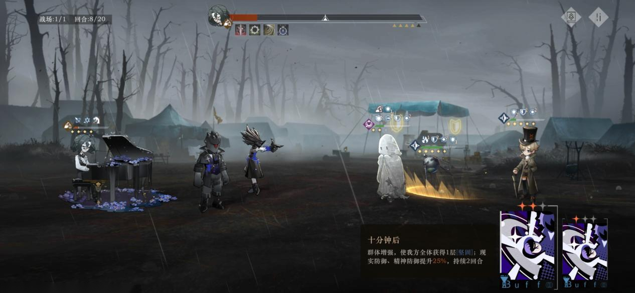 然后斯普特尼克真的是蓝色战神了,又肉大招伤害又高,而且大招的缴械加缄默效果还可以用来救场,还是很香的。再就是雾行者给到全队更好的生存空间,同时还有一定的输出和续航,大招伤害也特别高,只要稳点基本上10回合内能过关。不过弄臣太容易不容易满星,要玩的话可以试试别的前排。