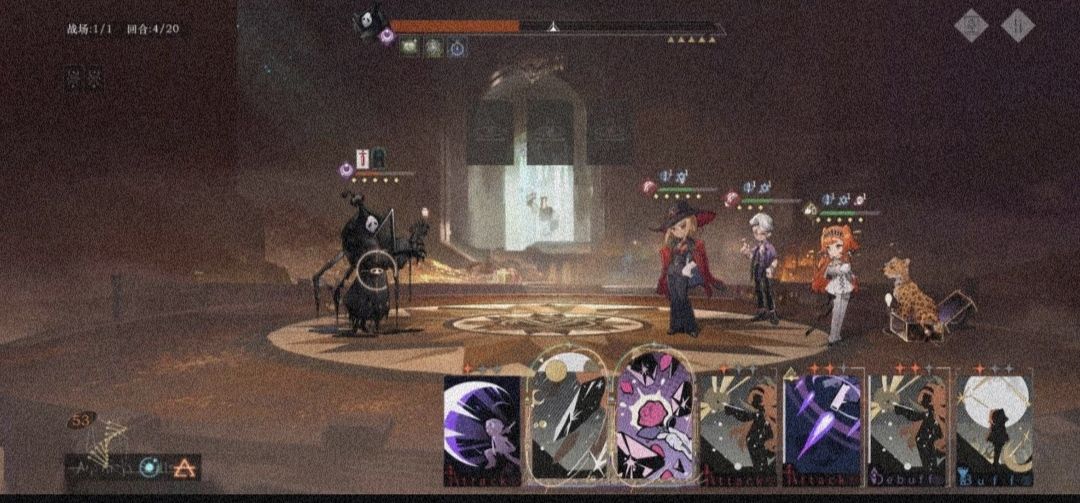 没办法两回合秒掉boss的话,前面没必要进行输出,第一回合、第二回合我们主要需要做的就是升级攻击型技能卡,攒技能点,确保在第三回合或是第四回合能够一起集火boss。