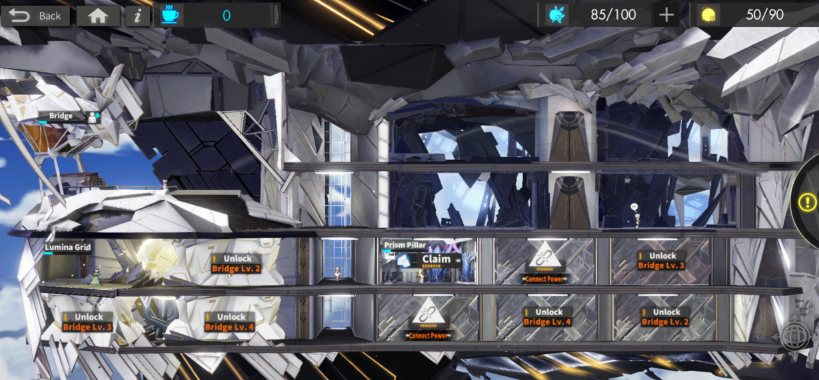这是升级优先级最高的两个选项。棱镜之柱会产出体力“棱镜”以及储存最大上限,资源携带室升级后可以解锁效率更高的资源副本。