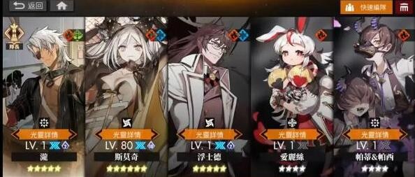 1、入门配队:泷、斯莫奇、浮士德、爱丽丝、帕蒂&帕西