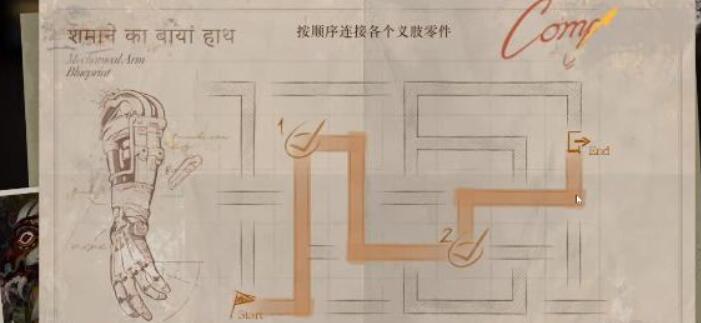 1、首先玩家需要按照顺序将零件组合起来,先从左下角的出发点连接到1处。