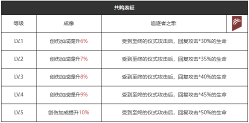LV.5:创伤加成提升10%,受到至终的仪式攻击后,回复攻击*50%的生命。