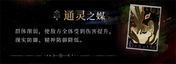 2、通灵之媒:提升全体伤害,削弱敌方全体现实防御、精神防御。