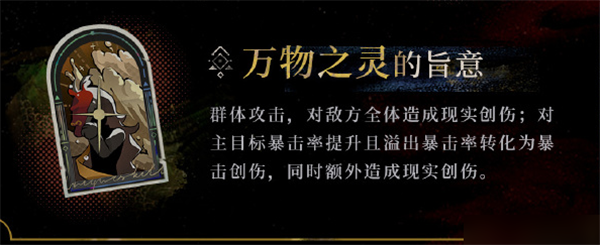 3、万物之灵的旨意:敌方主目标受到暴击伤害,额外增加现实创伤。