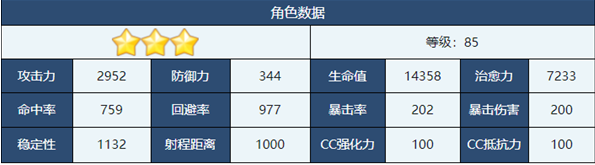 技能CD时长50秒,可对友方队伍里HP最低的1名角色进行治愈力147%~279%的回复,如果该回复对象是圣三一所属学生的话,那么回复量为治愈力的207%~393%。