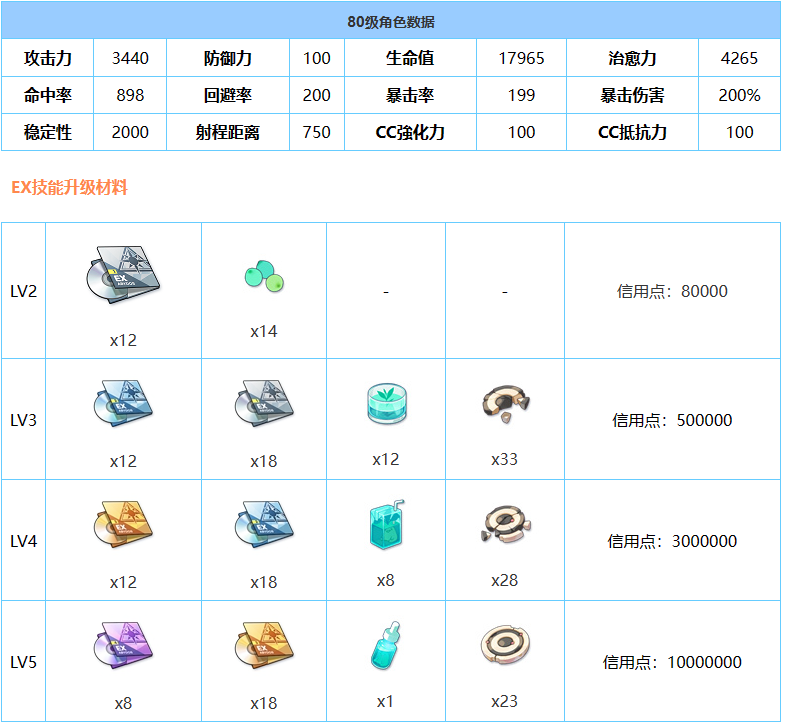 辅助技能:EX技能发动的同时,暴击率增加12.9%~24.5%(持续40秒)。